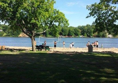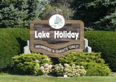 Lake Holiday is set on 1500 acres with a 328 acre lake; there is 8.1 miles of shoreline. Average depth of the lake is 16 ft. with 25 ft. depth in some areas: Greatest length of the lake is 2.35 miles: The lake has an interesting shape with 12 picturesque coves and has three (3) beaches, two (2) for swimming and one (1) for boat launching only.